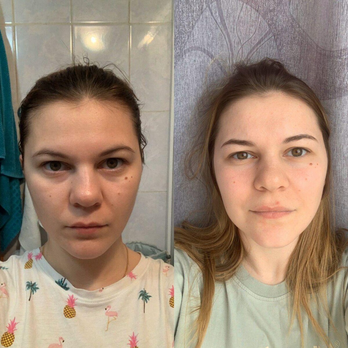 Цвет лица ровный, контур четкий, а кожа свежая и гладкая.